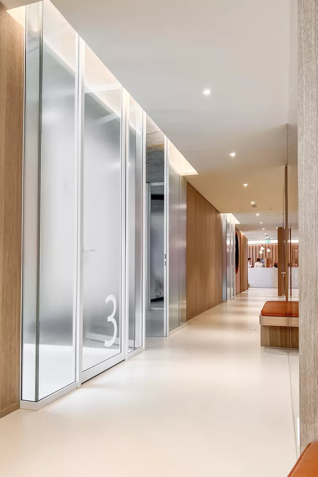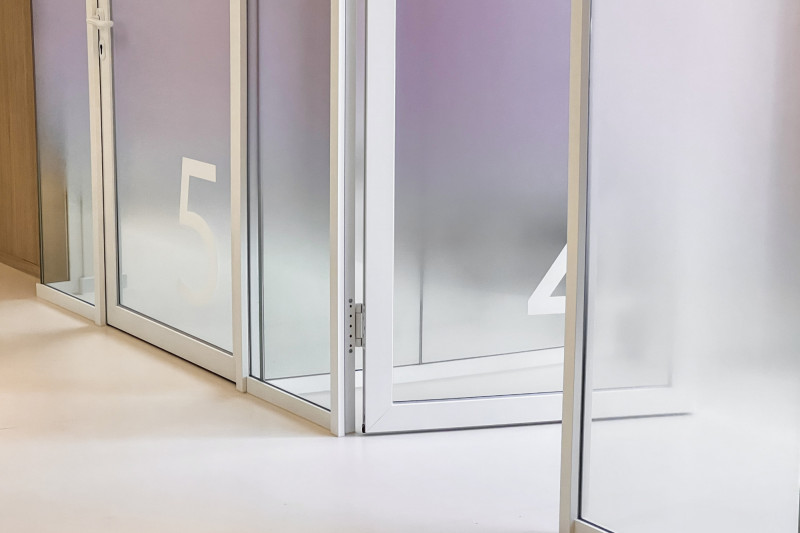 Leitsystem und Sichtschutz für arona - das Zahnzentrum in Ulm.