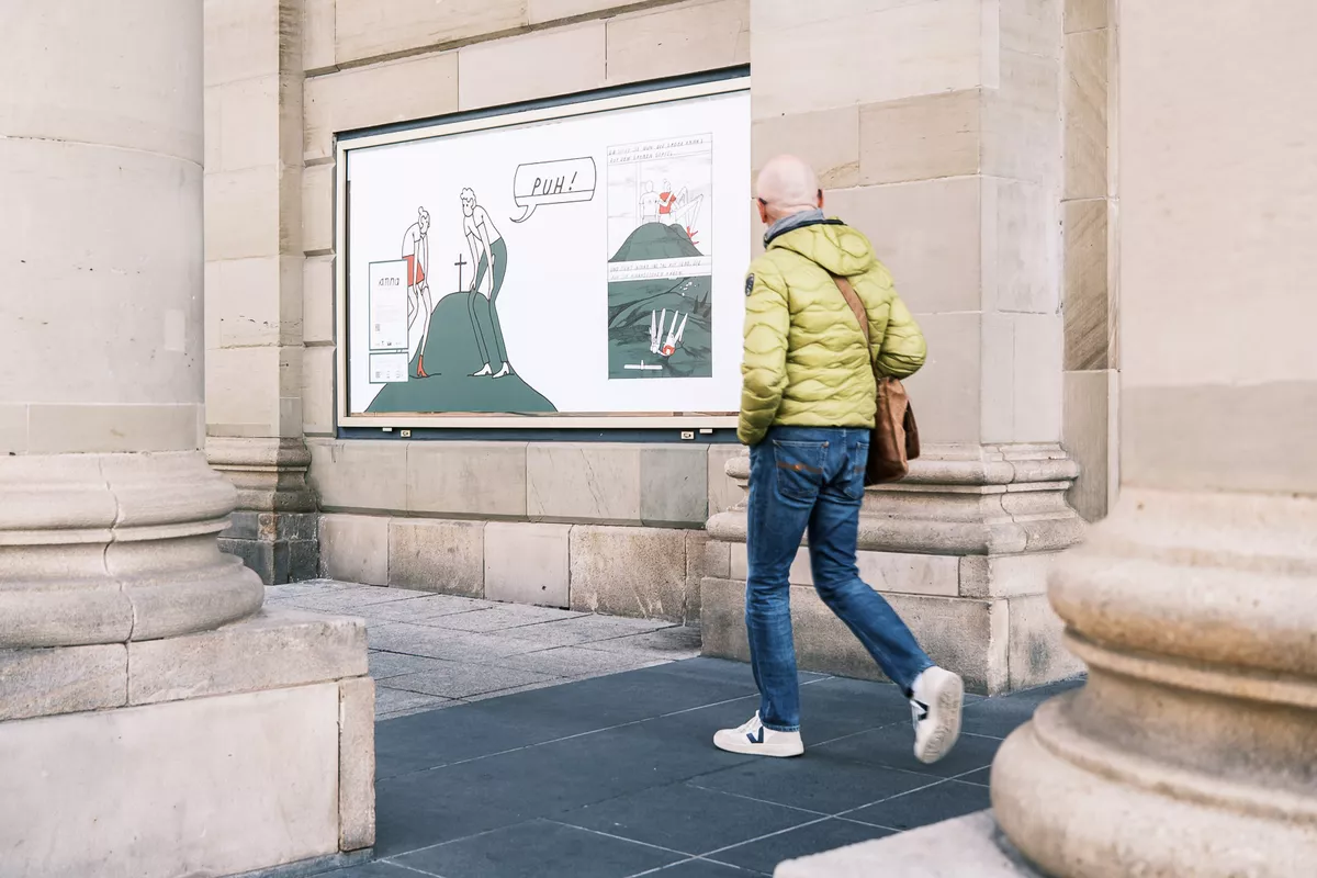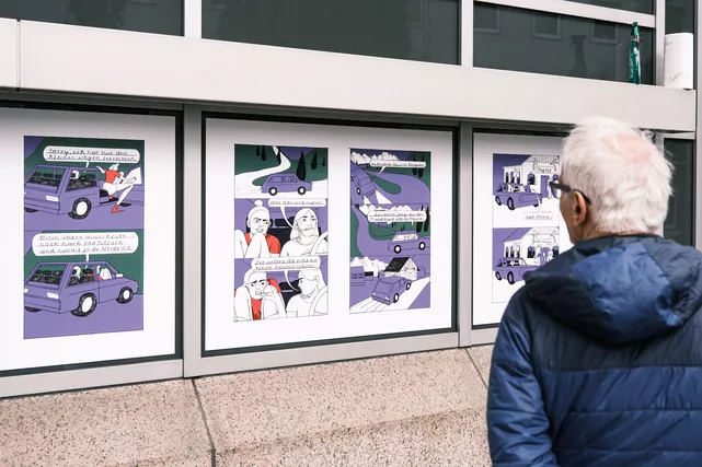 Stadtrundgang mit dem Comic "Anna" von Mia Oberländer, Gewinnerin des Comicbuchpreises 2021.Verschiedene Stationen der Graphic Novel führen durch das Leben von Anna, die mit ihrer Größe zu kämpfen hat.