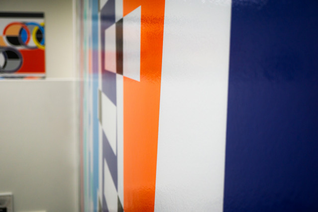 In enger Zusammenarbeit mit den Malern und der Künstlerin selbst entstand so eine präzise Umsetzung, die höchste gestalterische Ansprüche erfüllt. Ergänzt wurde das Projekt durch die Realisierung von Raumtexten sowie eine großformatige Fassadenbeklebung, die bereits von außen auf die Ausstellung aufmerksam macht.