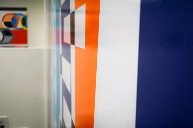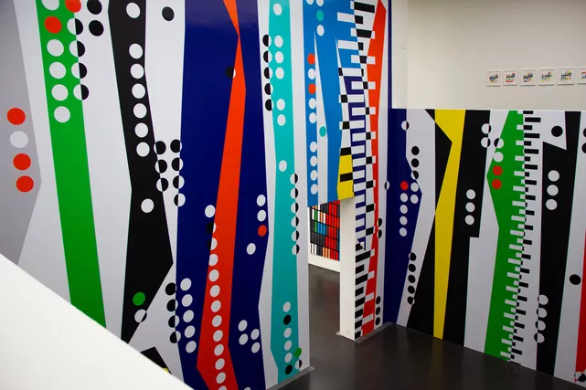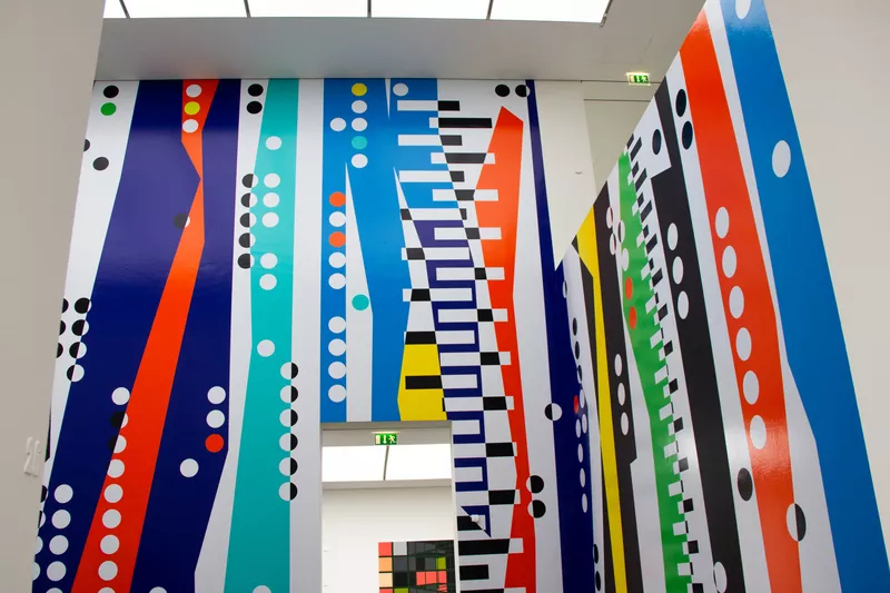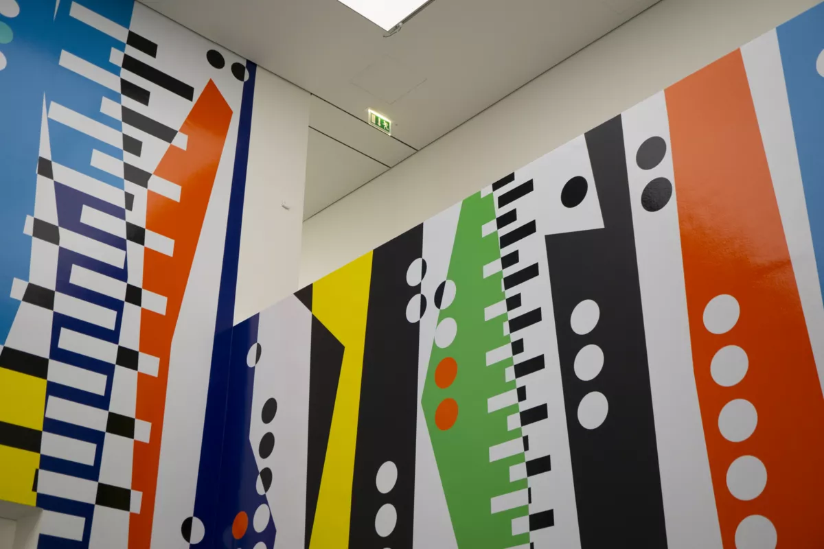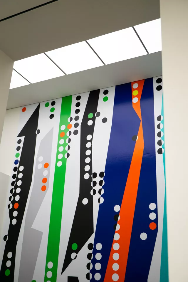 Für die Ausstellung von Sarah Morris im Kunstmuseum haben wir ein beeindruckendes Werbetechnik-Konzept umgesetzt. Zentrales Element ist eine raumhohe Schablone, die sich über zwei Stockwerke erstreckt und das Werk der Künstlerin eindrucksvoll erfahrbar macht.