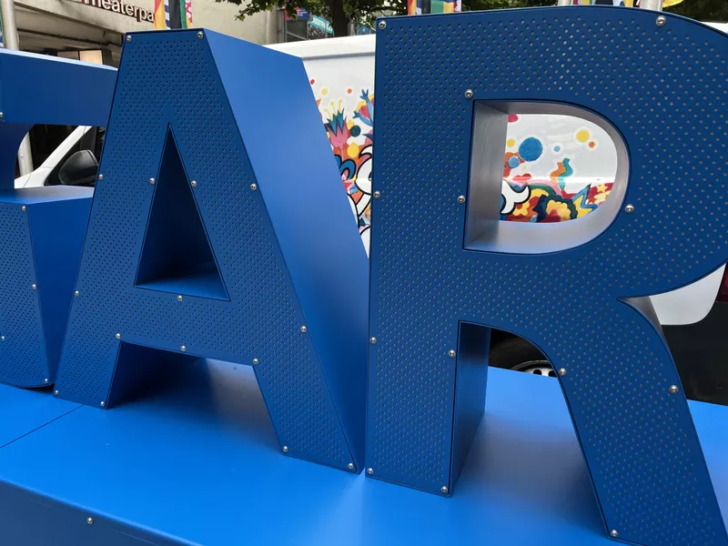 Die Buchstaben des Schriftzugs sind sechs Meter breit und 1,60 Meter hoch und wurden aus Lochblech gefertigt. Der Herstellungsprozess umfasste das Laserschneiden, Stanzen, Biegen, Schweißen und Pulverbeschichten, um eine langlebige und wetterfeste Konstruktion zu gewährleisten.