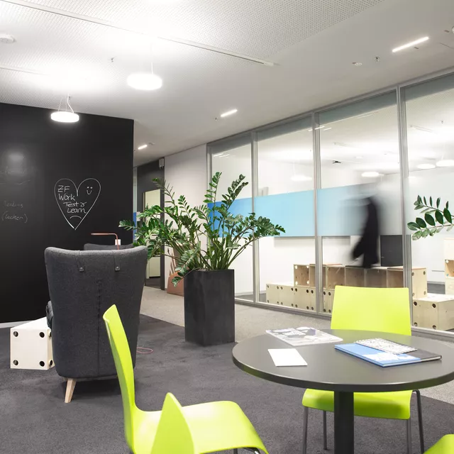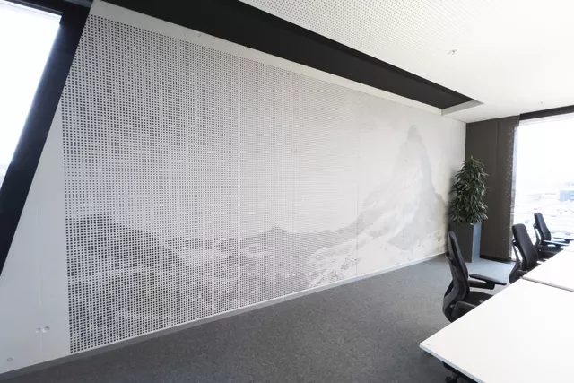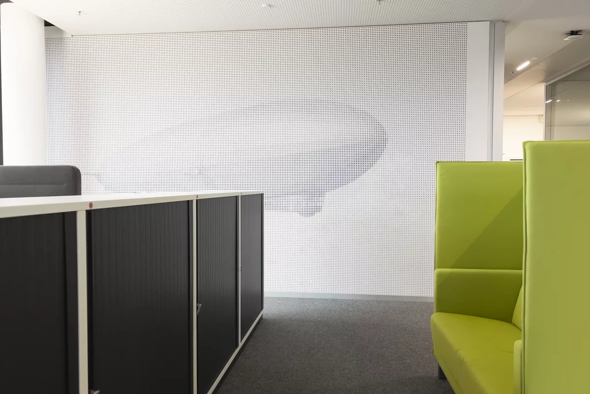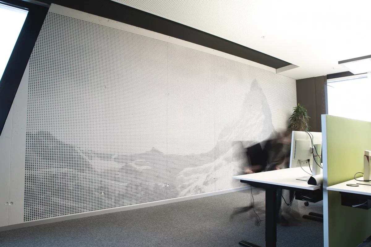 Wir realisierten eindrucksvolle Gestaltungsmaßnahmen für ZF in Friedrichshafen. Durch den Einsatz von Laufschutz mit Farbverlauf und übergroßen, gerasterten Motiven, darunter Berge, Wasser und ein Zeppelin, entstand eine beeindruckende Atmosphäre. Sichtschutzfolien mit freigestellten Digitaldruckmotiven wurden geschickt integriert. Diese kreative Umsetzung verleiht dem Raum nicht nur eine ästhetische Dimension, sondern spiegelt auch die Identität und Innovation von ZF wider.